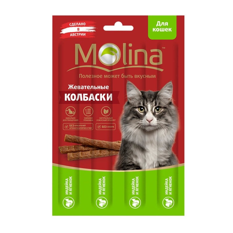 Molina Жевательные колбаски для кошек с индейкой и ягненком 20 г