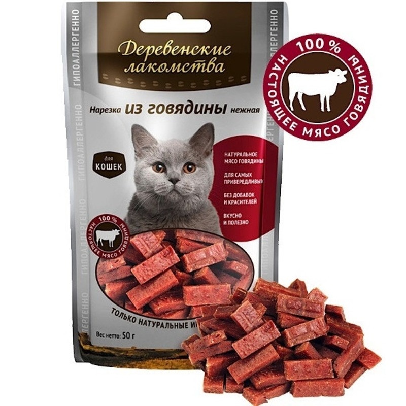 ДЕРЕВЕНСКИЕ ЛАКОМСТВА Нарезка из говядины нежная для кошек 50гр