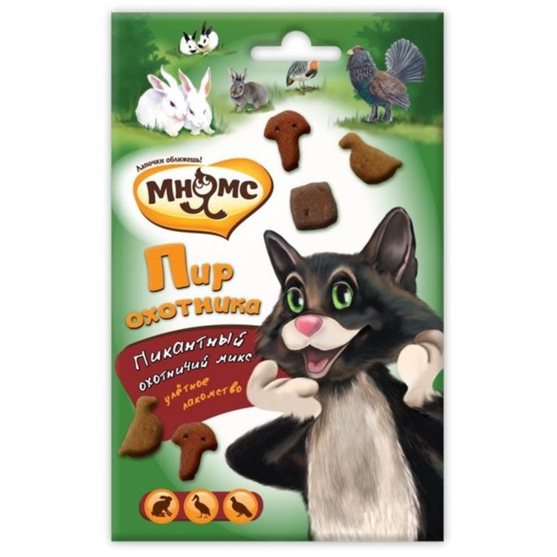 Тонкий аромат готовящегося на огне лакомства - истинная награда для настоящих охотников! И новое лакомство "Пир охотника" подарит вашему питомцу незабываемое наслаждение удивительной палитрой вкусов.