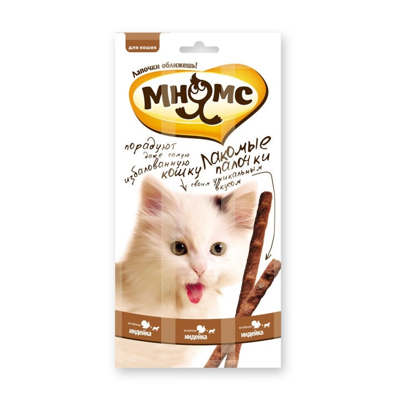 Мнямс лакомые палочки Индейка с ягненком 13,5 см для кошек - 5 г х 3 шт