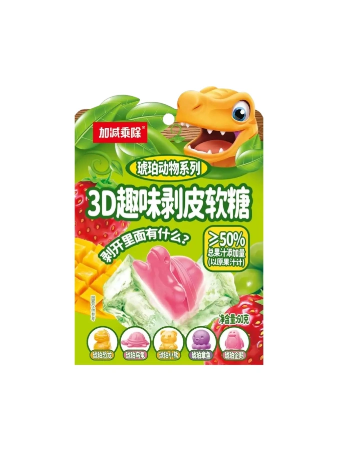Конфеты желейные с фруктовым соком ДИНОЗАВРЫ ( КЛУБНИКИ, МАНГО, ВИНОГРАДА, ЯБЛОКА) 60г