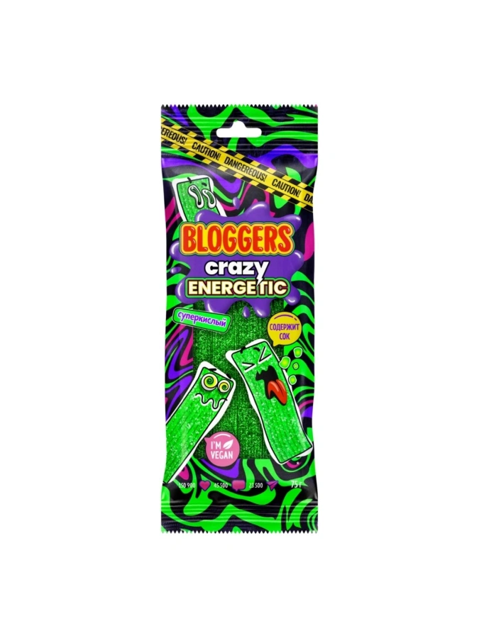 Мармелад BLOGGERS "Крейзи Энергетик" (ремешки) в кисло-сладкой обсыпке жеват. со вкусом энергетик. 75г